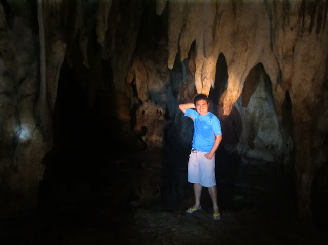 We waited first outside for there is only small number of people allowed inside the cave. As the last batch of guests for a number 12 came out at the other end, we were given our head gear and were instructed by our guide to follow him as he entered the cave in one by one as the passage is really that narrow and low. I was asking the guide where was the opening of the cave and he pointed to me its opening with less than 2 feet high and as wide as 3 feet in approximation. I thought then that it was just at the opening. But mind you, it was not!!! We have to crawl for approximately 30 feet distance in a completely pitch black cave where movement is limited because the ceiling is so low. I panicked at first and begged to go back. The flooring was wet and at some point our feet are dipped in a cold water and in my mind was "what if a flashing water will get inside!!! I might die instantly!!! Oh no!!!" I was in complete commotion deep inside. I want to shout my disapproval but I saw some of my companions religiously crawling and they are not even as experienced spelunker like me. So, I just shut my mouth completely and did the crawling with my mind closely calling God for help that something bad might not happen that moment.